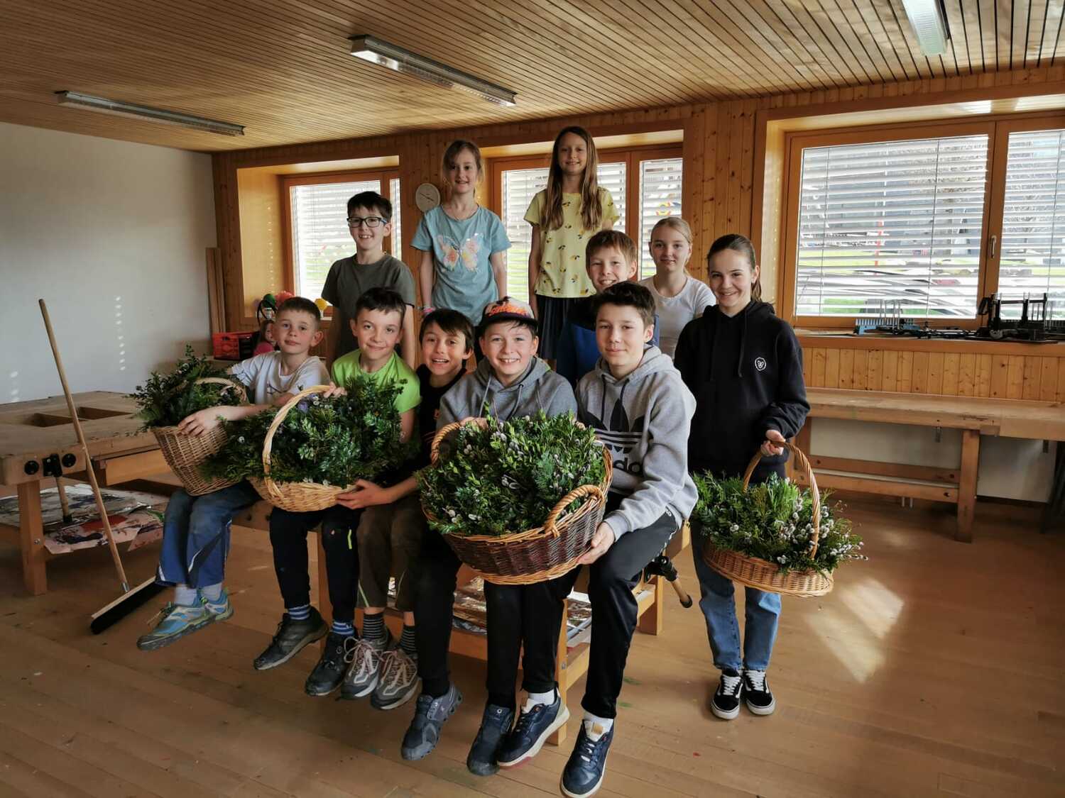 PGR Riefensberg / Palmbuschenbinden der Ministranten mit Unterstützung von Mamas